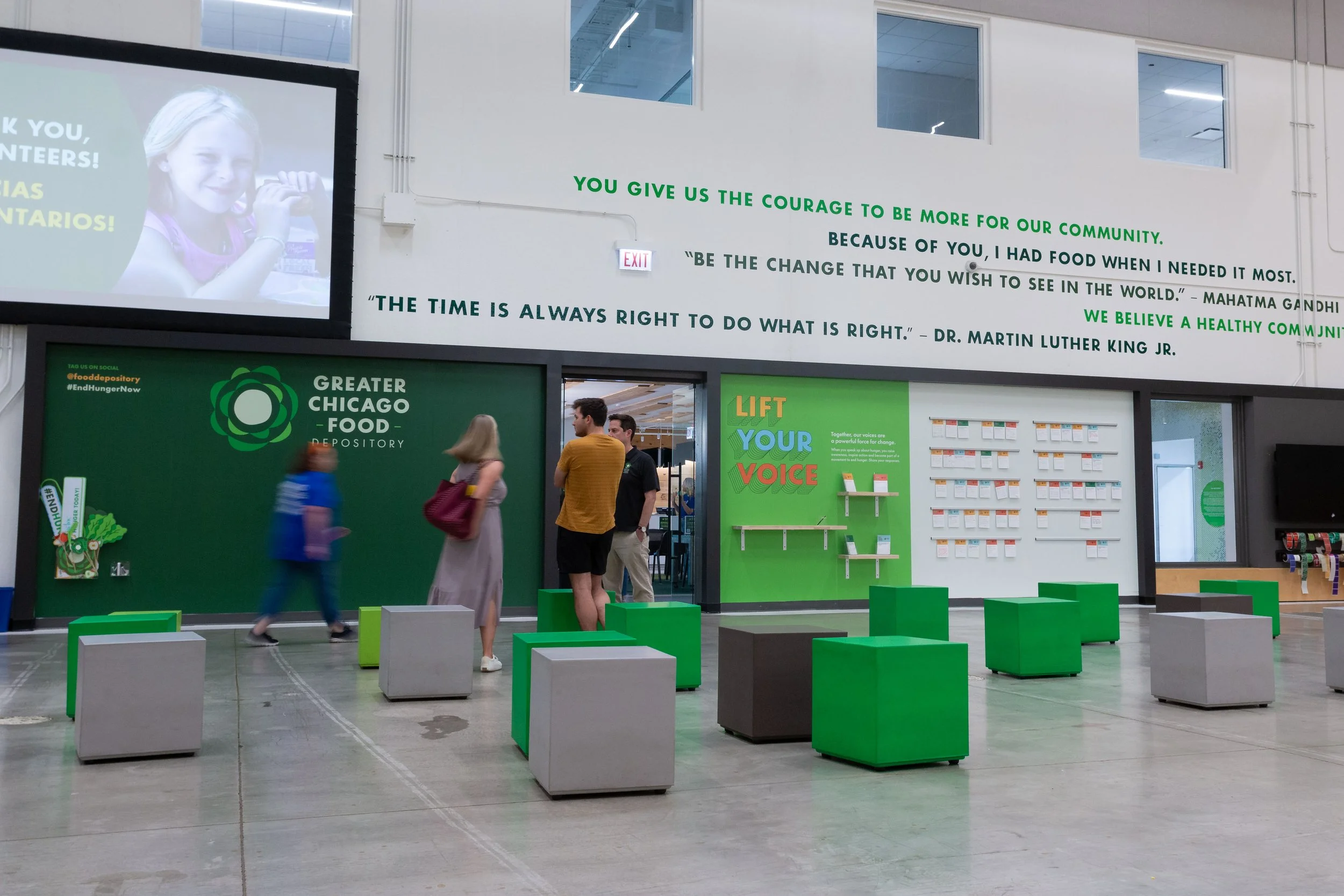 The largest, most involved project I worked on for GCFD was a suite of large-scale wall installations for the Food Depository’s massive facility in Chicago’s Archer Heights neighborhood.