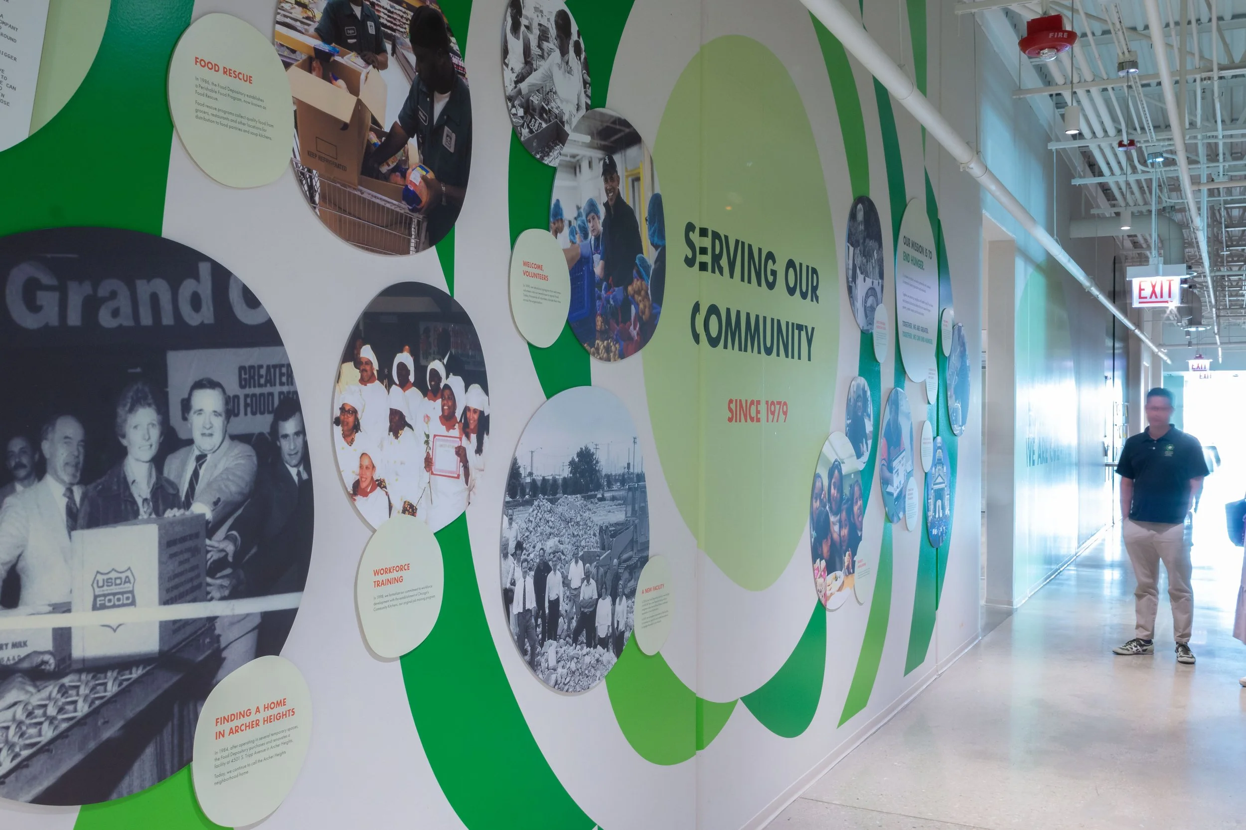 The history wall’s sister installation was an interactive wall intended to foster a greater sense of community amongst GCFD’s employees. Dry-erase installations were installed along with dozens of creative prompts relating to the Food Depository’s mission.